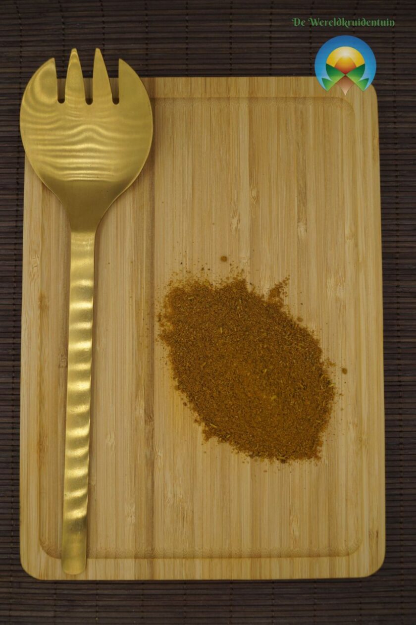 zwarte komijn, chilipeper, kaneel, knoflookpoeder, kardemom