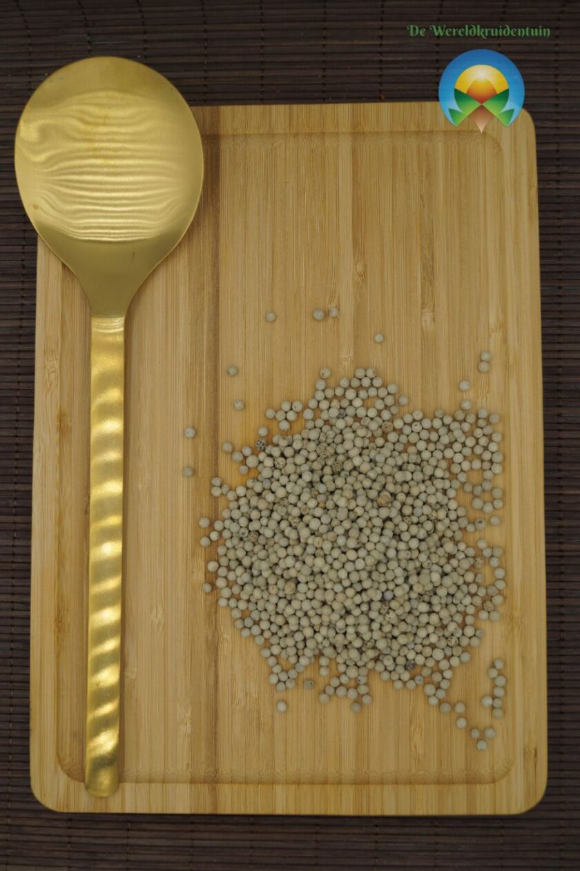 Witte peperkorrels wordt gemaakt doordat het rijpt aan de witte peperplant totdat de peper verkleurd is tot rood of oranje in landen zoals Vietnam. Vervolgens wordt de vel losgeweekt en het witte vruchtvlees wordt gedroogd wat zich uiteindelijk ontwikkeld tot de pepersoort. Witte peper smaakt minder dominant dan zwarte peper maar voegt alsnog een kruidige stabiele smaak toe aan soepen, roerbakgroenten, roerbak vlees, gebakken groenten en gestoofde groenten.